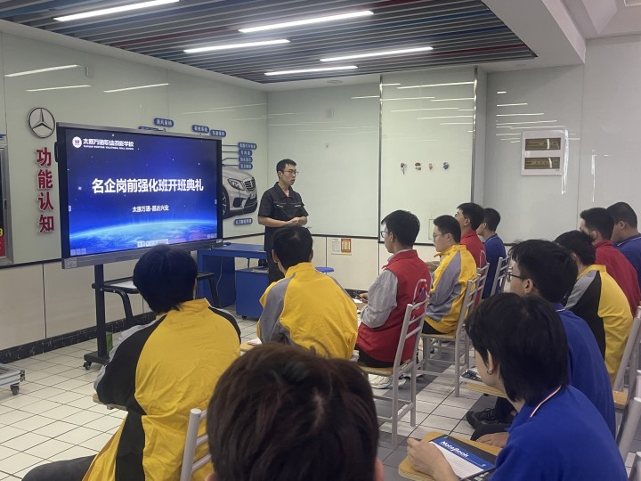 为进一步强化准毕业生岗前学习意识,提升同学们上岗后的各项素质能力,由太原万通与太原市昌达兴业汽车服务有限公司共建的新能源汽车岗前强化定向班于近日举行了开班典礼。